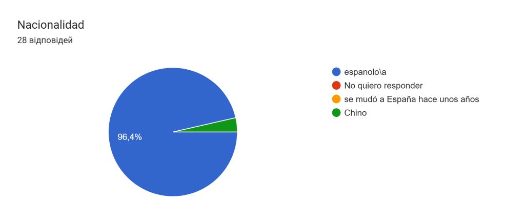 De los 28 encuestados, 27 personas tienen ciudadanía española y una persona tiene ciudadanía Сhina.