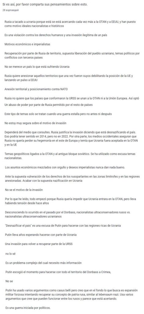 Fue interesante e importante para mí realizar este tipo de encuesta, aunque no sea representativa, porque la situación en Ucrania es realmente terrible: además de la guerra real, hay una guerra de información.