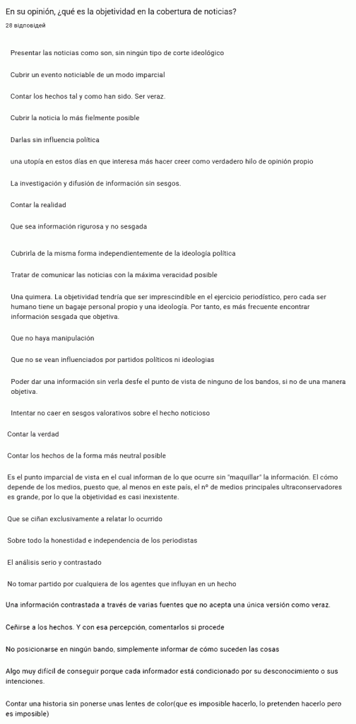 La siguiente pregunta del cuestionario, en la que también me quiero centrar, es la opinión sobre la objetividad en la cobertura informativa.
